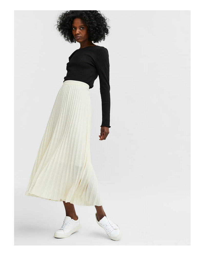 Selected - Kaunis kuminauhavyötäröinen plisee-hame midi mitassa. Yhdistä juhlaan juhlavan yläosa ja korkokenkien kanssa, tai arkeen tennareiden ja teepparin kera.