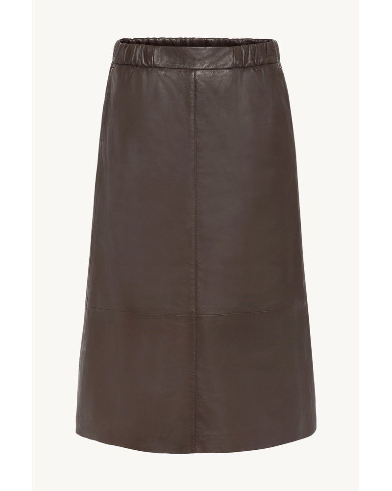 Claire Woman - Tyylikäs midi-mitan nahkahame, jossa halkio takapuolella. Kuminauhavyötäröinen malli, jossa taskut edessä. Alla kiinteä vuorinakangas.