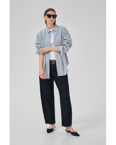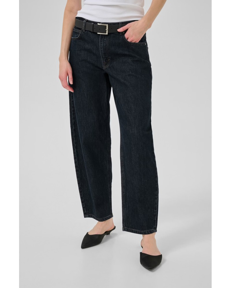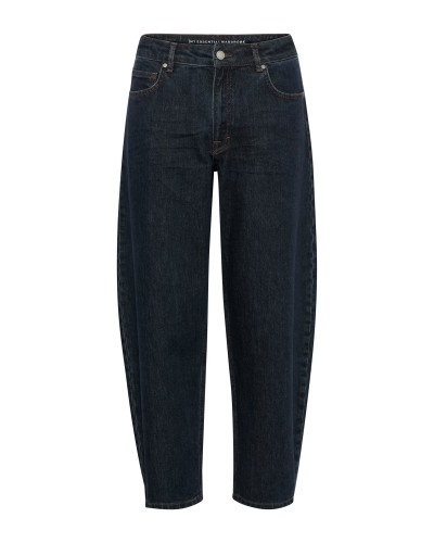 My Essential Wardrobe - Super trendikäs barrel mallin farkku. Yksi lahkeenmitta "28. Lantiolta istuva, reisiväljä ja nilkkaan kapeneva malli. Materiaalissa 1% elastaania. Kivan topakka, mutta silti joustava laatu. Vetoketjukiinnitys. Väri: dark blue un-wash. Väri luonnossa hieman vaaleampi kuin kuvassa. Katso mitat alta!