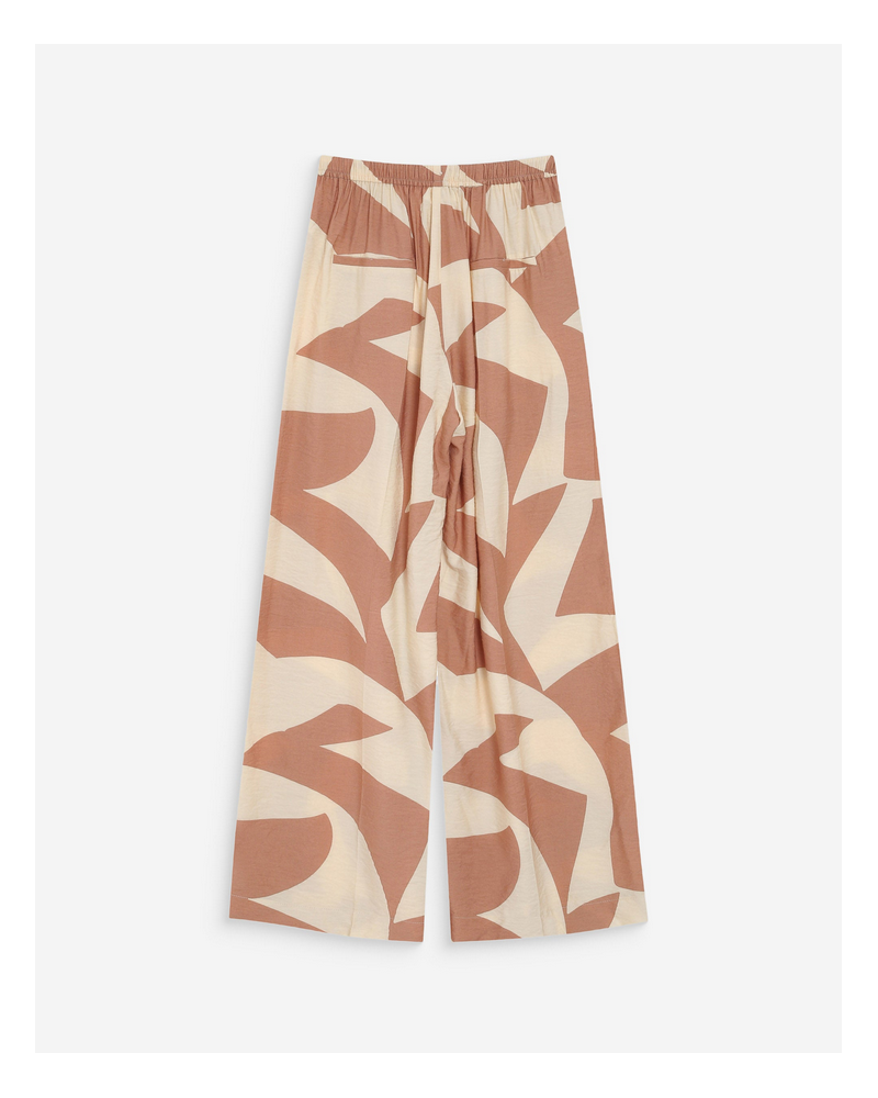 Grace & Mila - Näissä graafisesti kuvioiduissa kevyissä housuissa on suora leikkaus ja joustava keskikorkea vyötärö kiristysnyörillä. Veni housuissa on etutaskut ja laskokset edessä. Yhdistä sarjan oman paidan kanssa asuksi.
