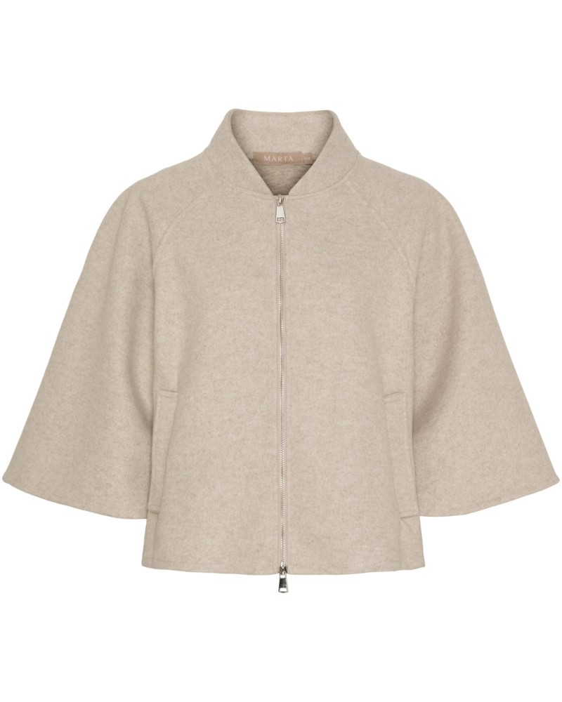Marta du Chateau - Siisti lyhyt takki, jossa leveät 3/4-hihat. Vetoketjukiinnitys ja taskut. Kaksi kokoa: S/M ja L/XL. Käytettäväksi talviaikaan sisäjakkuna/livinä, muutoin ulkotakkina. Väri: beige. Katso mitat alta!