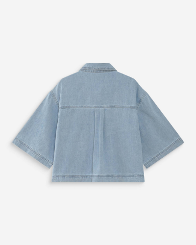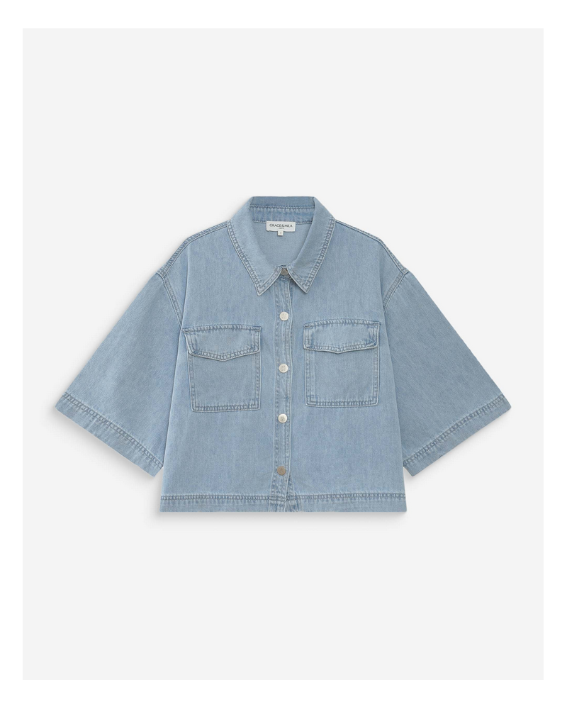 Grace & Mila - Ohuesta denimkankaasta valmistettu Vita jakku jokapäiväiseen käyttöön. Tässä farkkupaidassa on nepparikiinnitys edessä, siinä on leveät hihat ja oversize-istuvuus, joka korostaa paidan rohkeaa tyyliä. Pienet halkiot sivuilla.
