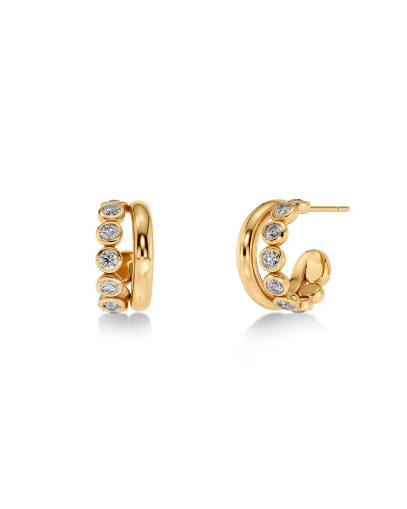 Edblad - Kauniit Grace sarjan korvakorut. Materiaali kiiltävä ruostumaton teräs 14 karaatin kultauksella ja kuutiollinen zirkonia. Mitat: leveys 7mm, halkaisija 12mm. Nikkeliturvallinen ja vedenkestävä materiaali.