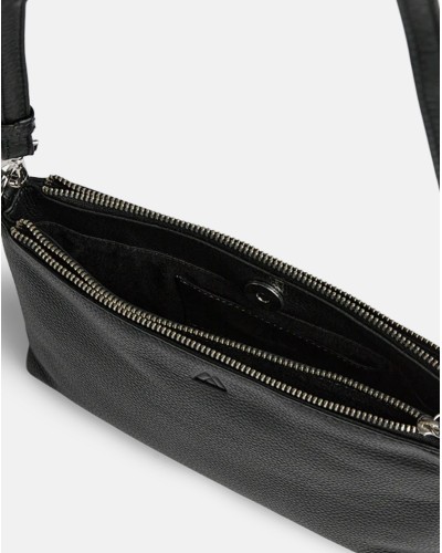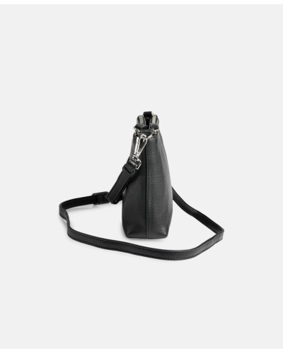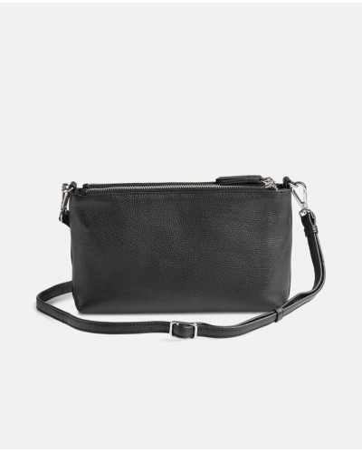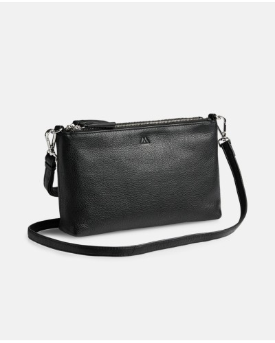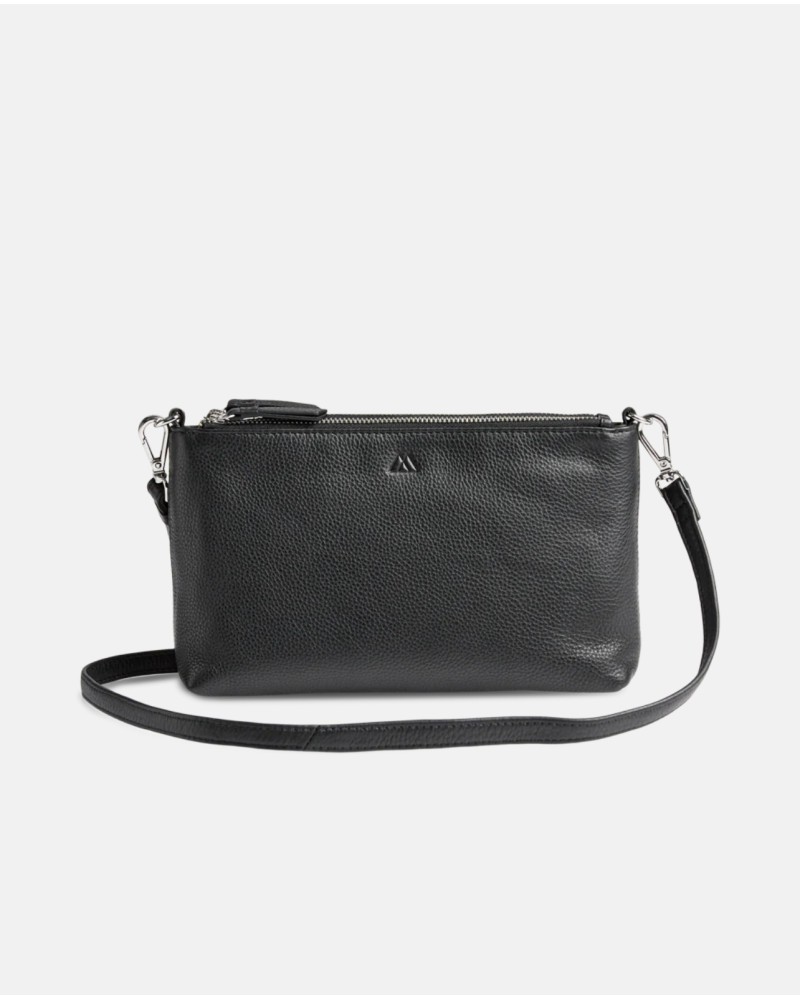 Markberg - Tyylikäs ja yllättävän tilava pikkulaukku, jossa on kaksi erillistä vetoketjutaskua. Lisäksi magneetilla suljettava tasku keskellä. Irroitettava ja säädettävä nahkahihna. Koko: 14 x 24 x 5cm.