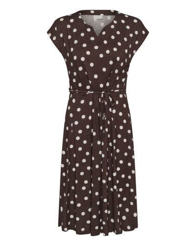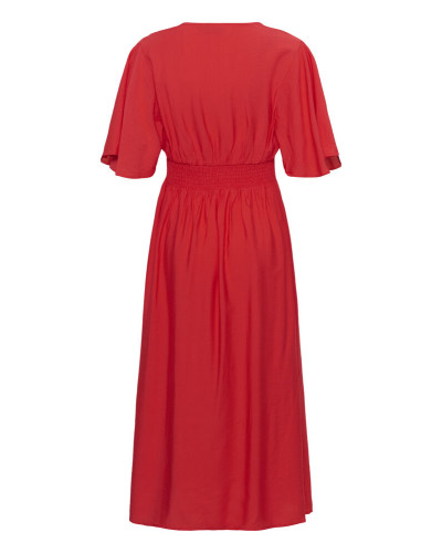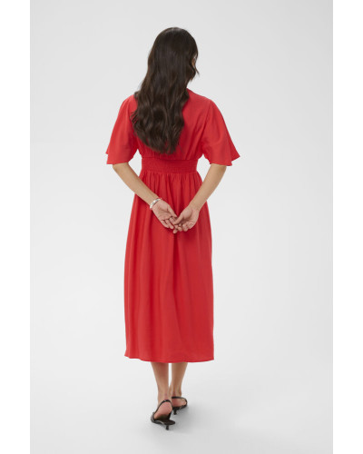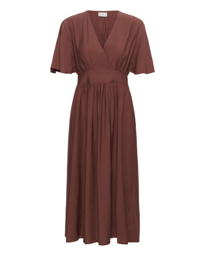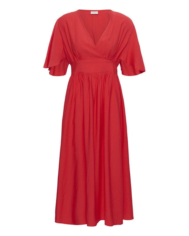 Kaffe - Kaunis midi-mekko, jossa on korostettu vyötärö, v-pääntie ja rennot lyhyet, hulmuavat hihat. Laskeutuva siluetti, jossa rypytys rinnan ja helman kohdalla lisää liikettä. Malli on 181 cm pitkä ja käyttää kokoa 36.