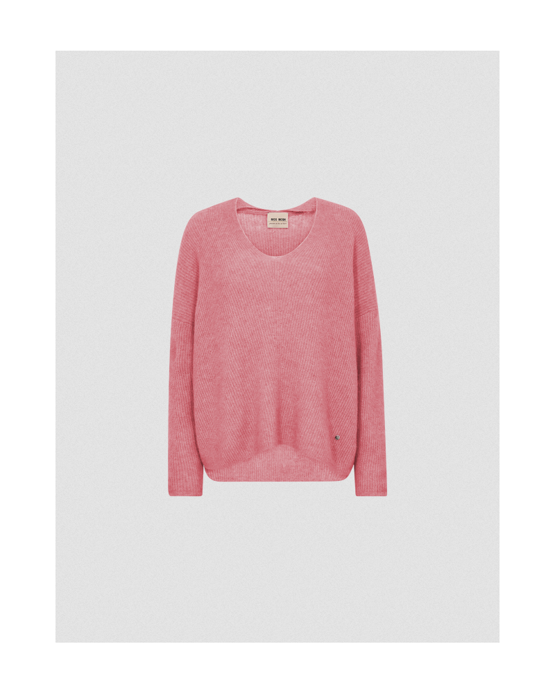 Mos Mosh - Supersuosittu, ihanan pehmoinen Thora neule kevään 2026 uutuusvärissä! V-päänteinen ja väljä neulemalli. Dropattu olkasauma. Värikoodi: dusty rose. katso mitat alta!
