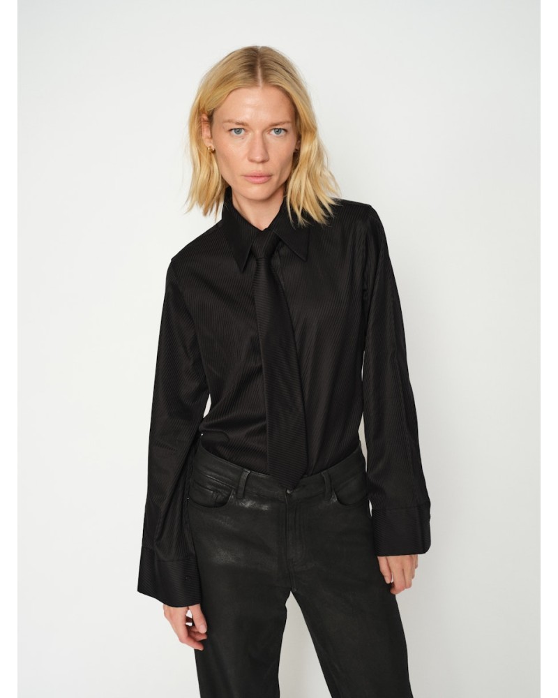 Mos Mosh - Mahtava sävy sävyyn raidoitettu kauluspaita, jossa mukana solmio. Hieman kiiltävä materiaali. Napitus koko matkalla edessä. Paidassa on istutettu olksauma ja täypitkät hihat.