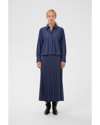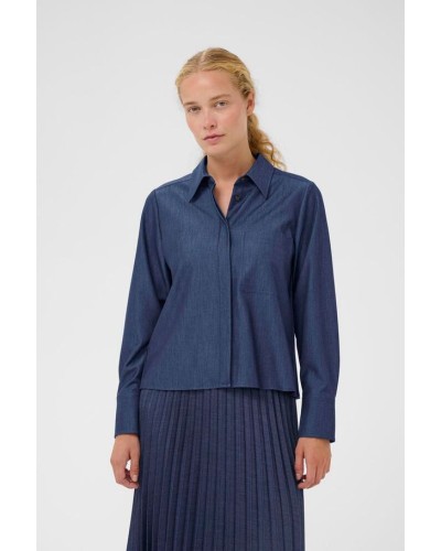Inwear - Hauska denim-henkinen plisee-paita. Edessä rintatasku, piilonapitus ja kaulukset. Takana kaunis pliseeraus. Paidassa on täyspitkät hihat. Kivan laskeutuva ja helppohoidettava materiaali. Yhdistä asuksi sarjan oman hameen kanssa. Katso mitat alta.