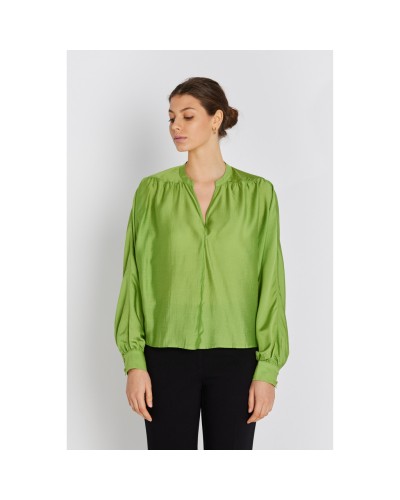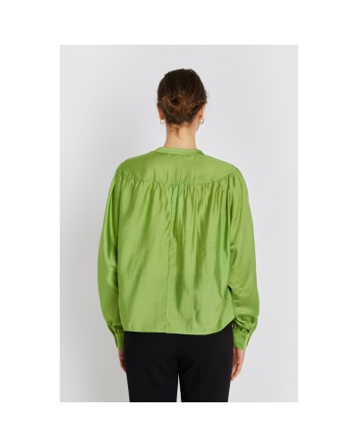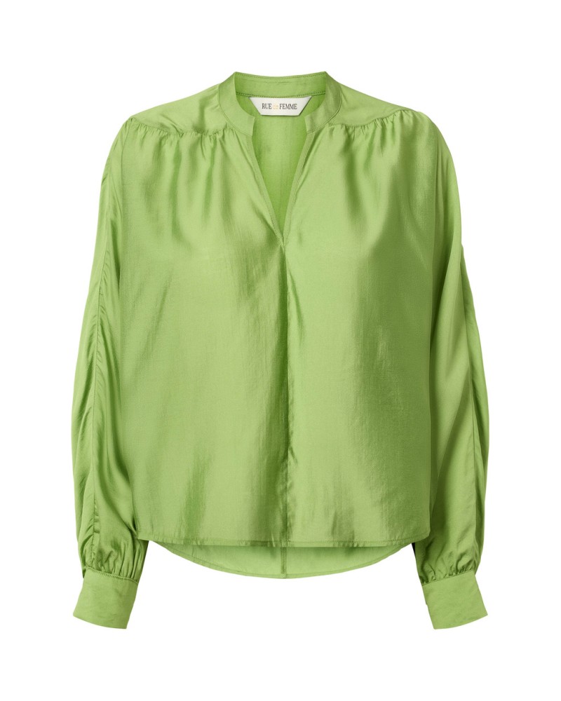 Rue de Femme - Mirelle-pusero on kevyt pusero, jossa on edessä napitus ja hienot laskokset, jotka luovat pehmeän ja sulavan siluetin. Leveät hihat lisäävät naisellisuutta ja skandinaavista yksinkertaisuutta. Yhdistä farkkujen kanssa rennon ilmeen tai hameen kanssa elegantin ilmeen luomiseksi. Katso mitat alta!