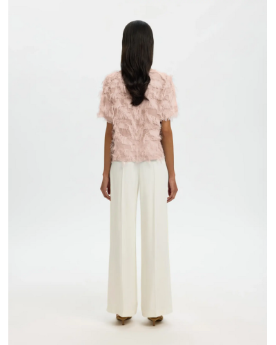 Selected Femme - Ihanainen hapsutoppi, jossa vene-pääntie ja pienet hihat. Yhdistä rennosti farkkujen ja tennareiden kera tai juhlaan räätälöidyn alaosan ja korkokenkien kanssa. Väljä istuvuus. Rinnanympärys koossa 36: 104cm ja niska-helma pituus. 53cm.