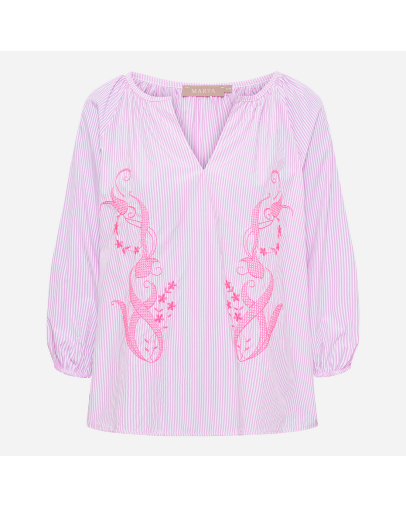 Marta du Chateau - Kaunis Brooke pusero, jossa on ohuet raidat. Puserossa on hieno kirjonta edessä ja pyöreä pääntie, jossa on V-aukko. Väljä mitoitus. Katso mitat alta!