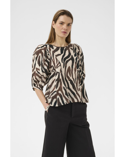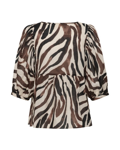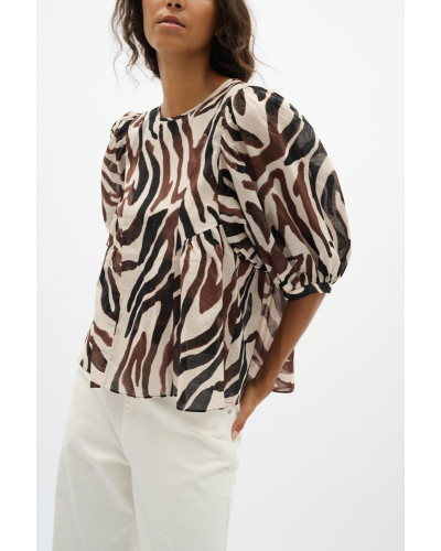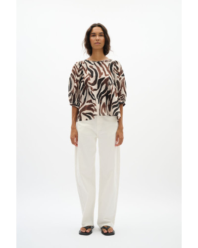 Inwear - Kaunis eläinkuosinen puuvillatoppi, jossa väljät hihat. O-päänteinen malli, jossa hauskoja leikkausyksityiskohtia.