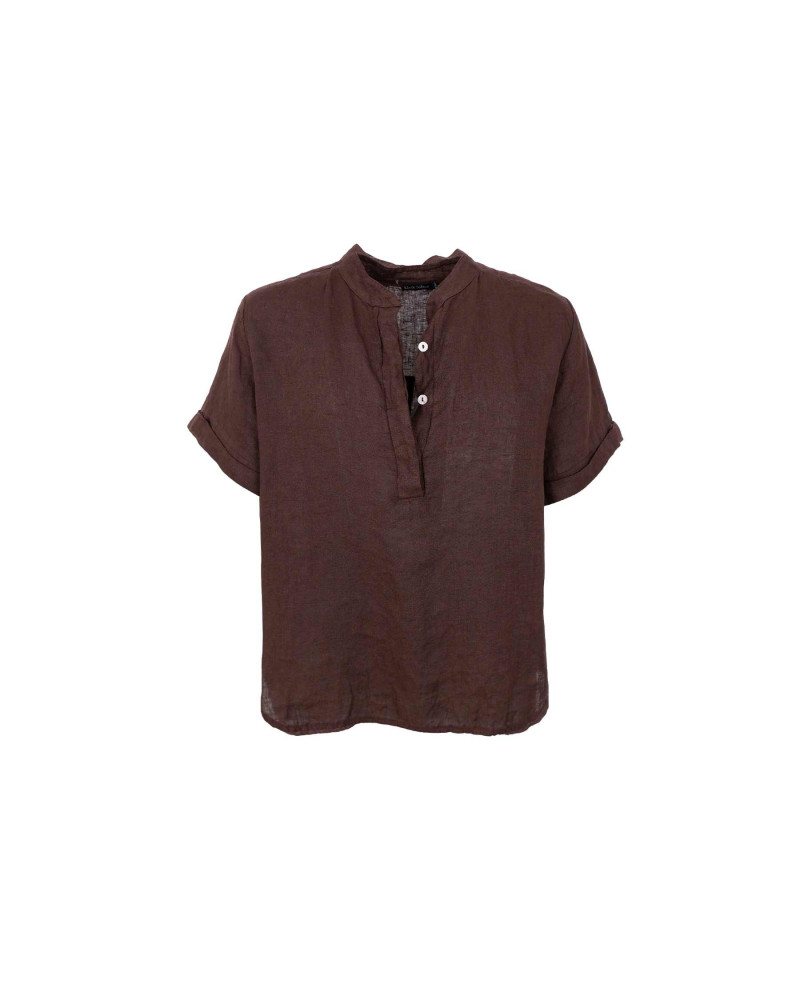 Black Colour - Pellavapaita lyhyillä hihoilla, hihoissa käänteet. Kauluksessa napit listan alla. Pyöristetyt helmat ja pienet halkiot sivuilla. Mitat koossa S/M: rinnanympärys 112cm, pituus edestä 64cm ja pituus takaa 68cm.