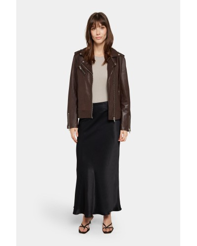 Rockandblue - Tyylikäs ja ajaton biker-mallinen nahkatakki. Malli on melko suora ja siinä on pienet kaulukset. Hihojen suissa vetoketjut, alahelmassa vyölenkit. Tämä takki sopii niin kesämekon päälle kuin lempifarkkujen kanssa. Takki on valmistettu pehmeästä lampaan nahasta.