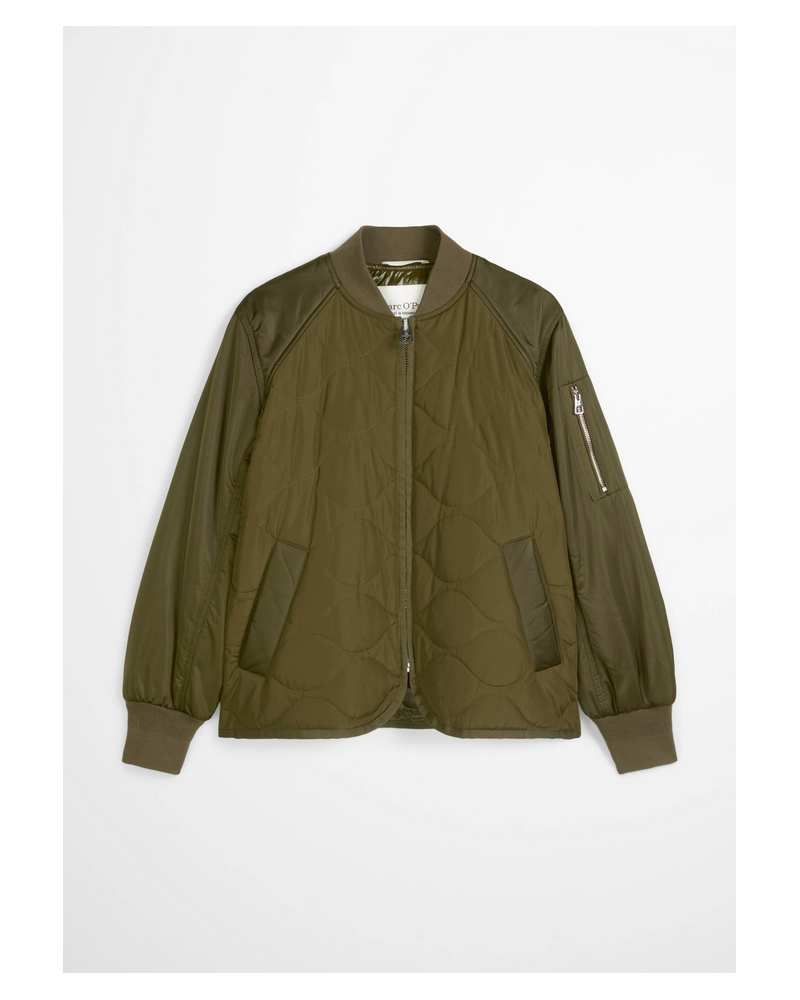 Marc O'Polo - Tikattu viittatyylinen bomberi vihreänä Rento yhdistelmä moderneja, teknisiä materiaaleja matta- ja kiiltävällä pinnalla, sileillä ja tikatuilla tekstuureilla. Taatusti lämmin ja tyylikäs. Tämä viittatyylinen takki on superkevyt, pehmeästi topattu ja vettähylkivä. Siinä on rento leikkaus lyhyemmässä pituudessa ja tunnusomaiset yksityiskohdat: ribbineulottu kaulus, ribbineulotut hihansuut, vetoketjullinen tasku raglanhihassa, kestävä metallinen vetoketju edessä, kaksi käytännöllistä halkiotaskua ja rento, pyöristetty helma. Vetoketjulla avattavat sivusaumat ovat erityispiirre. Koossa 40 rinnanympärys 118cm ja koossa 42 122cm.